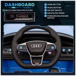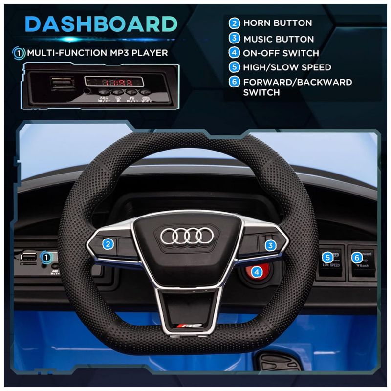 Experiência interna: O volante possui um botão para tocar uma buzina, dando às crianças o poder do ruído para tornar sua peça mais agradável. Isso também adiciona segurança, permitindo que eles chamem a atenção de outras crianças brincando na frente do carro elétrico. Com uma porta USB e AUX no painel, as crianças podem cantar suas músicas favoritas ao longo do passeio. Adicione realismo com plug ins como um carro de verdade.