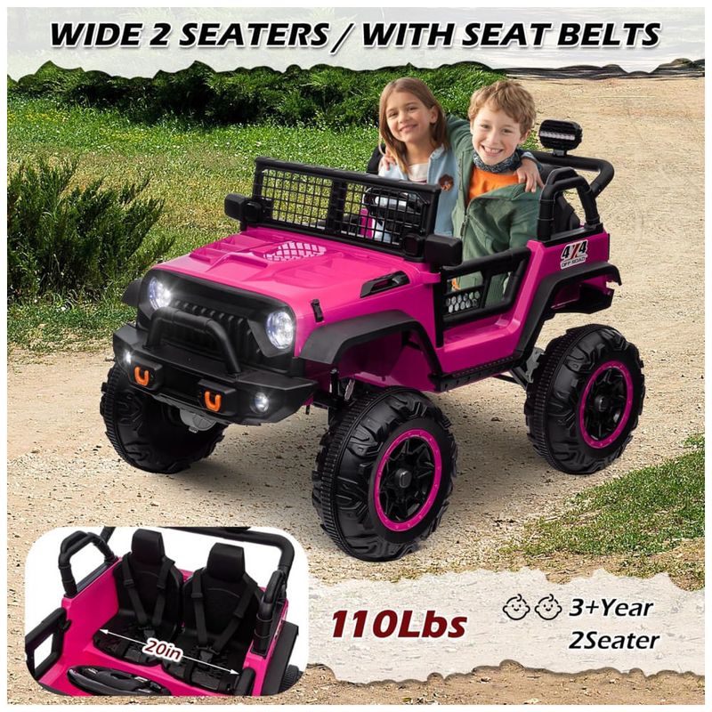 Com 4 motores potentes, o carro pode fornecer potência mais forte e estável, garantindo um desempenho ideal e deixando seus filhos sentirem a alegria de dirigir! Este brinquedo de passeio de 24 volts tem um assento de 50 centímetros de largura e capacidade máxima de peso de 58,96 quilos, tornando-o uma boa opção para famílias com mais de um filho.