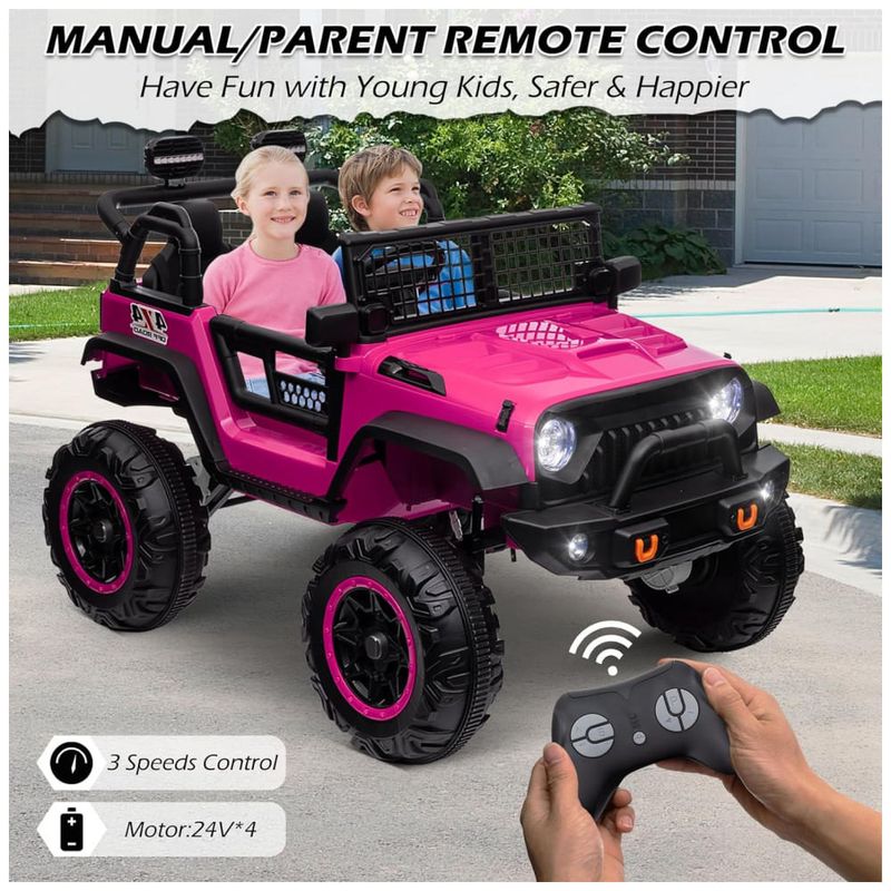 Este veículo elétrico infantil de 24V possui um motor comutável 4WD2WD que é equipado com quatro motores potentes de 100W, proporcionando uma potência forte e estável. O modo 4WD é ideal para superar obstáculos, enquanto o modo 2WD é eficiente para dirigir em superfícies planas por longos períodos. Ao contrário do passeio de carro com duas baterias de 12V conectadas em série, este carro elétrico tem uma única bateria de 24V, que é potente o suficiente para suportar 12 horas de carga total.