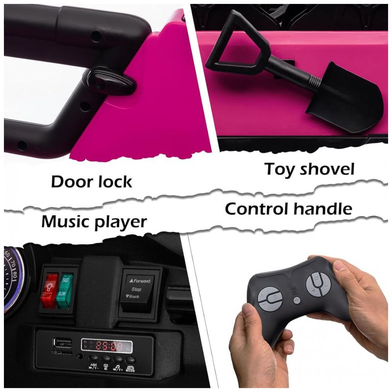 Ele também inclui cintos de segurança e um controle remoto para os pais para maior segurança. O sistema de freio suave do pedal do acelerador garante que o carro pare suave e rapidamente dentro de 0,5 segundos quando o botão de avanço para trás no controle remoto ou o pedal é liberado. As especificações incluem um tamanho de 120,90 cm x 83,82 cm x 81,79 cm C x L x A, diâmetro da roda de 14 polegadas, rolamento de peso de 49,89 quilos, velocidade de 3 a 5 km/h, bateria de 7AH e tempo de reprodução aproximado de 1 a 2 horas, dependendo de vários fatores, como carga, velocidade, superfície da estrada e flutuações de temperatura. Por fim, é importante mencionar que o produto é entregue em duas embalagens devido a restrições logísticas.