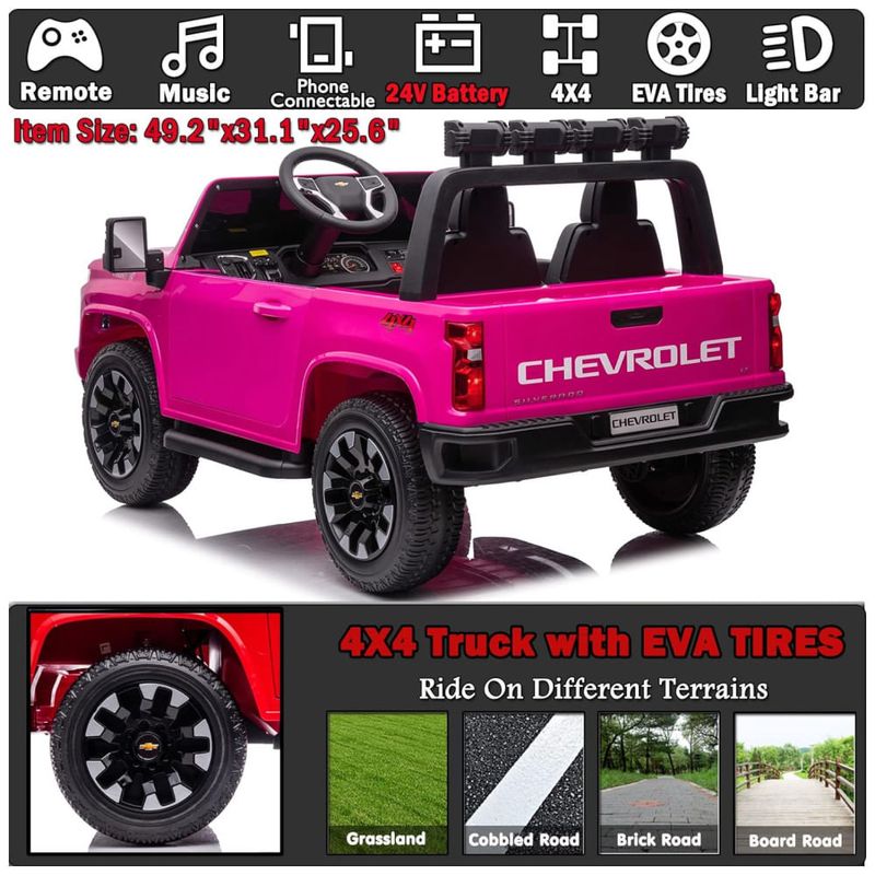 Este carro elétrico infantil, inspirado no Chevrolet Silverado HD, oferece uma experiência de condução empolgante e segura para as crianças. Com um design atraente e um corpo feito de plástico PP durável, certificado pela ASTM F963, este carrinho é ideal para passeios.