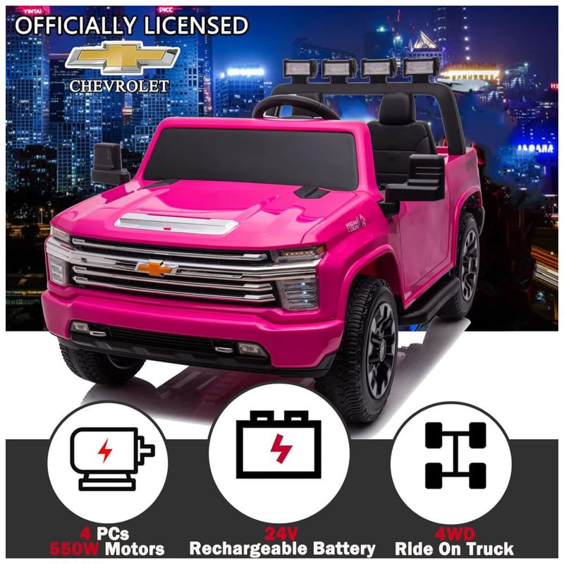 O caminhão é licenciado pela Chevrolet e inclui luzes funcionais, rádio multifuncional e sons realistas de motor, buzina e músicas infantis. Também possui conexões AUX e USB para que você possa reproduzir músicas ou histórias favoritas das crianças diretamente do seu dispositivo.