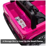 O carro possui assentos largos de 50 cm com cintos de segurança, garantindo conforto e segurança para as crianças. Equipado com rodas de borracha EVA e suspensão traseira com mola, o veículo é perfeito para aventuras off-road, podendo atingir uma velocidade máxima de até 9,7 km/h (6 mph).