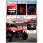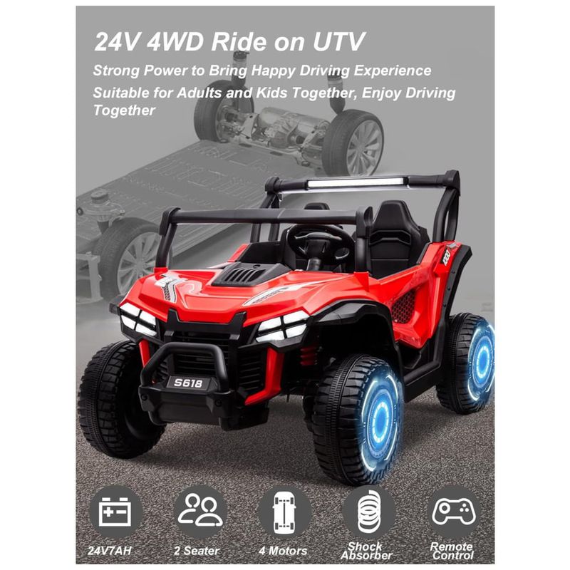 O UTV é alimentado por uma potente bateria de 24V e quatro motores de 80W, permitindo que atinja uma velocidade máxima de 6,9 km/h (4,3 mph) e proporcionando horas de diversão em diversos tipos de terreno. A tecnologia de partida suave e o sistema de freio garantem uma experiência de condução segura e confortável.