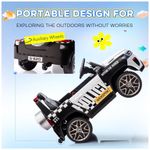 Para uma direção mais segura, o carro possui uma função de partida lenta e assentos espaçosos com cintos de segurança. Ele é certificado pela ASTM e vem com uma bateria recarregável, que oferece de uma a duas horas de diversão em terrenos variados quando totalmente carregada. O tempo de carga inicial é de quatro a seis horas.
