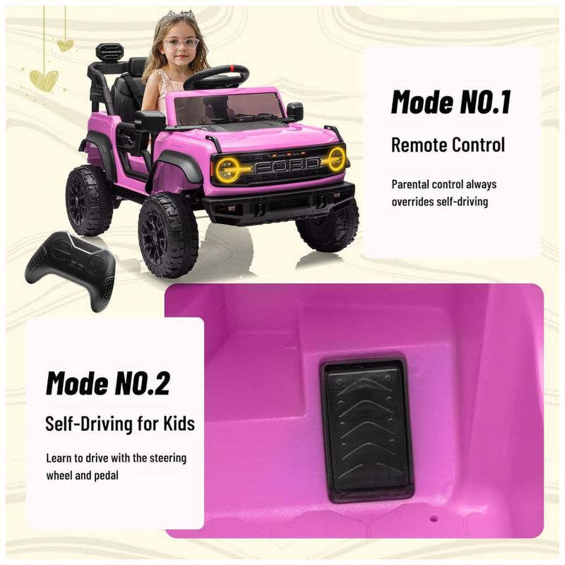 Este carro elétrico infantil é um modelo oficial licenciado pela Ford, inspirado no icônico Ford Bronco Raptor. Com um design detalhado e robusto, ele proporciona uma experiência de direção autêntica e emocionante para seu filho.