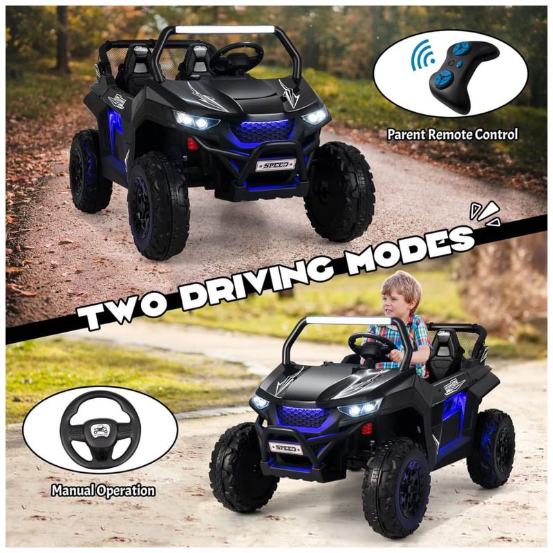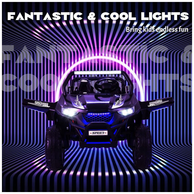 O UTV Infantil de 2 lugares é a escolha ideal para crianças que buscam autonomia e diversão durante suas brincadeiras. Com um design realista e recursos que garantem segurança e entretenimento, este carrinho vai encantar os pequenos. Ele vem equipado com faróis de LED brilhantes e luzes de atmosfera, proporcionando uma experiência de condução emocionante. Os assentos duplos largos e as portas abertas garantem conforto e fácil acesso.