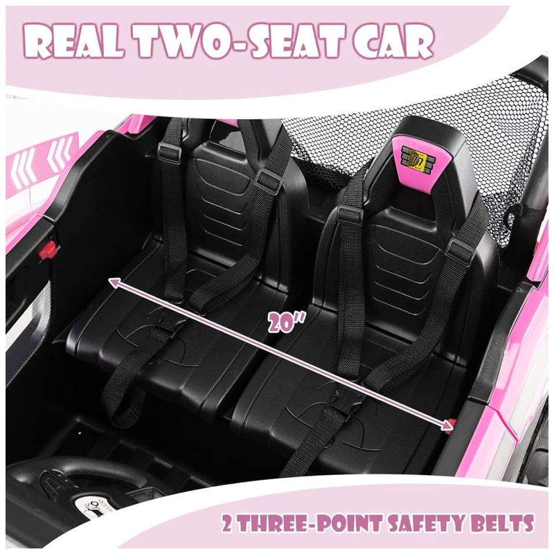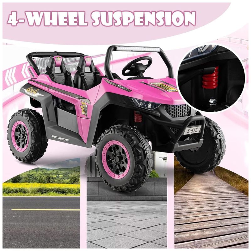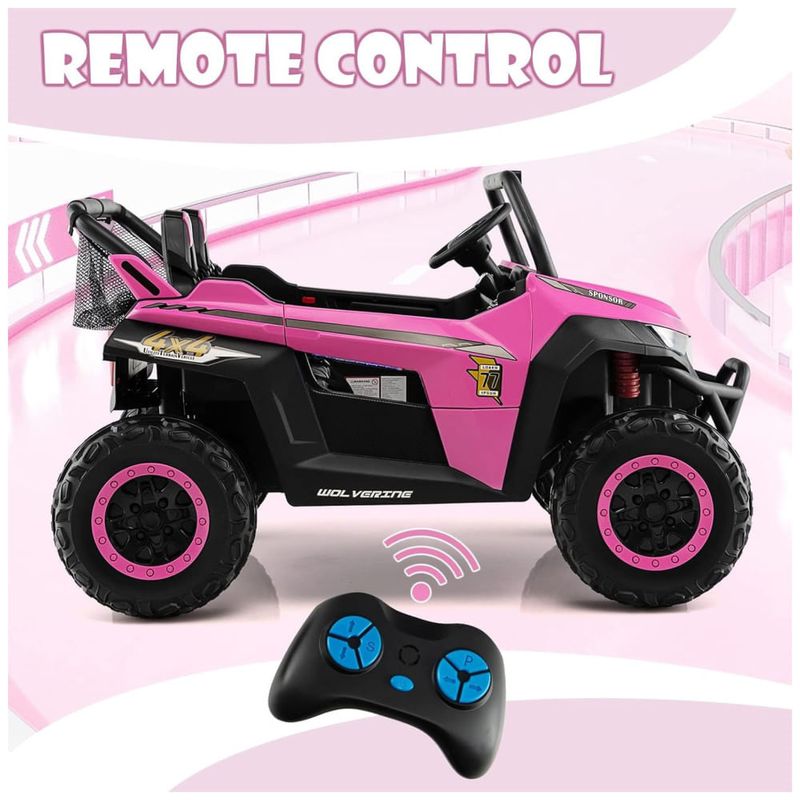 Para a segurança dos pequenos, o UTV oferece duas opções de velocidade, variando de 2 a 4 km/h, com uma função de partida suave que proporciona uma condução tranquila. A suspensão de mola nas 4 rodas garante uma viagem suave, absorvendo impactos e protegendo seus filhos. O carrinho possui dois modos de direção: as crianças podem dirigir usando o pedal, ou os pais podem controlar o veículo manualmente com um controle remoto de 2,4 GHz, oferecendo uma camada extra de segurança.