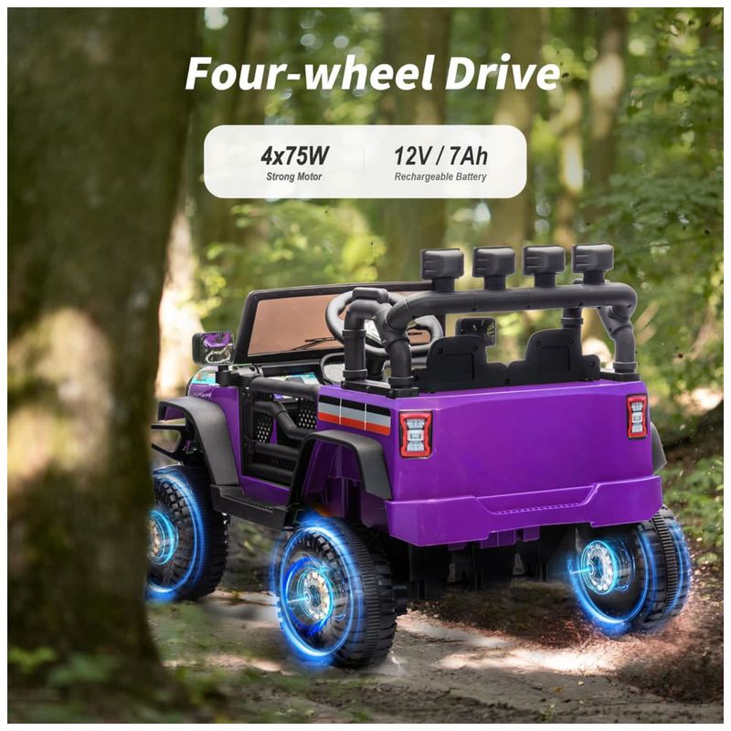 Este carro possui conectividade Bluetooth, permitindo que as crianças curtam suas músicas favoritas enquanto dirigem. A bateria de 12V 7Ah proporciona aproximadamente 1 hora de diversão antes de precisar de recarga, que leva cerca de 1,5 horas.