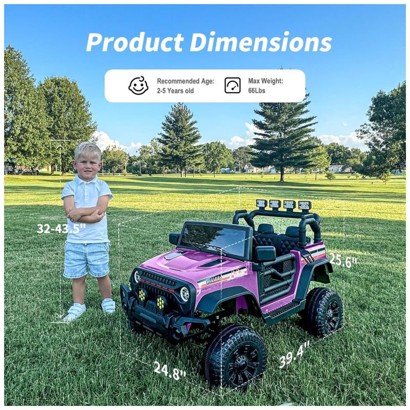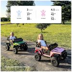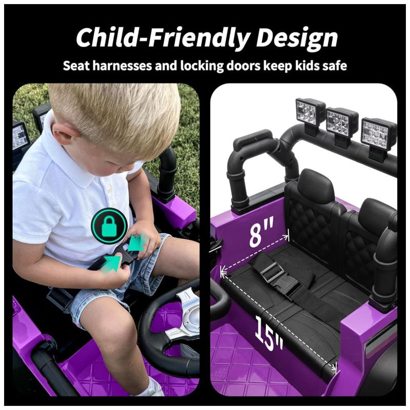 O carro oferece suporte para os pais controlarem a navegação quando necessário, além de um assento grande e confortável com 36 cm de largura, adequado para crianças de até 35 kg. Ele atende aos padrões de segurança ASTM CPSIA, garantindo um brinquedo seguro e confiável.