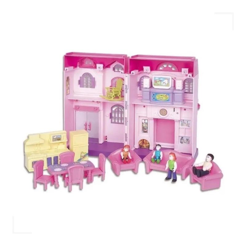 Que menina não adora uma linda casinha de boneca. Esta linda casinha vai encantar a sua princesinha. Com a Casinha de Boneca Dos Sonhos Suite da Braskit as meninas soltam a imaginação e brincam a vontade. Vem com suíte, varanda, sala e cozinha e vários móveis. A Casinha se abre para brincar dentro dela. Tem ainda som de campainha e latido de cachorro. Acompanha móveis da sala de estar, sala de jantar, cozinha e 4 bonecos semi - articulados. Ideal para crianças com idade a partir de 4 anos Para garantir a segurança, este produto é certificado e aprovado pelo INMETRO. ESPECIFICAÇÕES Código de Barras: 7896771606816 Fornecedor: Braskit Restrição: Não recomendável para menores de 3 anos por conter peças pequenas que podem ser engolidas. Idade recomendada: A partir de 4 anos Itens inclusos: 1 casinha, 2 bonecas (mãe e filha), 2 bonecos (pai e filho ),1 televisão, 2 caixinhas de som,1 mesa de jantar,4 cadeiras,1 geladeira,1 fogão,1 cadeira de balanço, 2 sofás pequeno,1 sofá grande,1 rack Aviso: As cores podem variar entre as imagens mostradas acima e o produto. Imagens meramente ilustrativas. Certificado: Certificado pelos Órgãos Autorizados - OCP'S (Organismos de Certificação de Produto) Composição: Poliestireno
