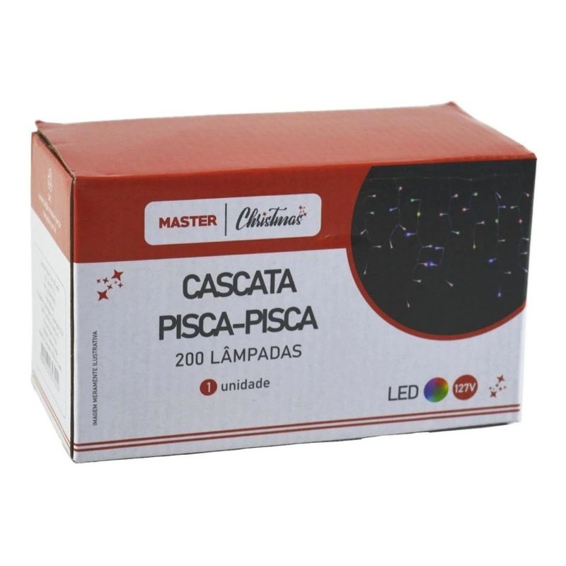 Pisca Pisca De Natal Modelo Cascata Com 200 Lâmpadas De Led, 8 Funções, Potência Máxima 4,3 W E Luz De Cores Sortidas. Medida do Item: 4,2 Metros
