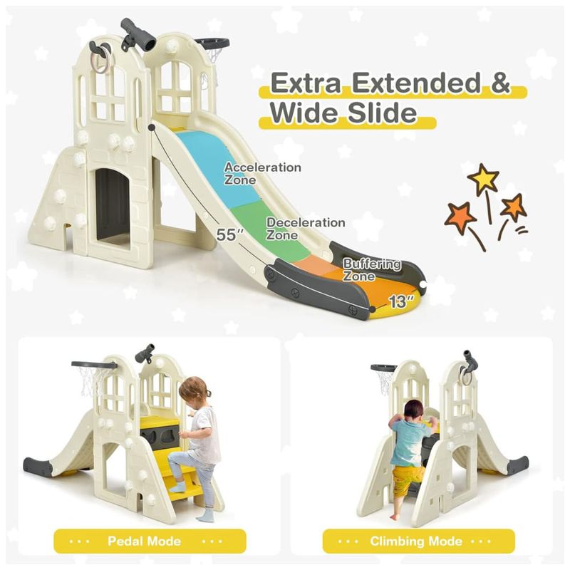 ESPORTESPLAYGROUNDSCASINHAS E CASTELOSCasinha Infantil para Área Externa 7 em 1 com Cesta de Basquete, Escorregador e Capa à Prova D'água, Costzon, Branca e Amarela