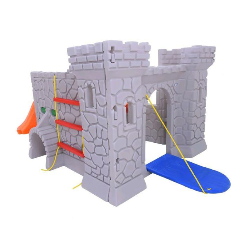 Castelo Medieval Xalingo Ideal para crianças a partir de 3 anos. Estimula a atividade física e o entretenimento entre as crianças. O Castelo Medieval Xalingo possui: * Estrutura completa no tema medieval; * 2 plataformas de observação nas torres; * 1 manivela para a ponte elevadiça (abre para os dois lados); * 1 "túnel porão" para esconderijo; * 1 escada de cordas; * 1 escorregador.