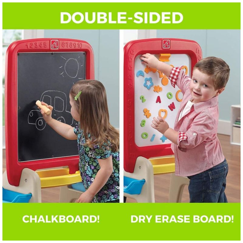 Transforme o aprendizado e as brincadeiras das crianças com o Cavalete Infantil de Dupla Face Step2 – o suporte perfeito para momentos criativos e educativos!