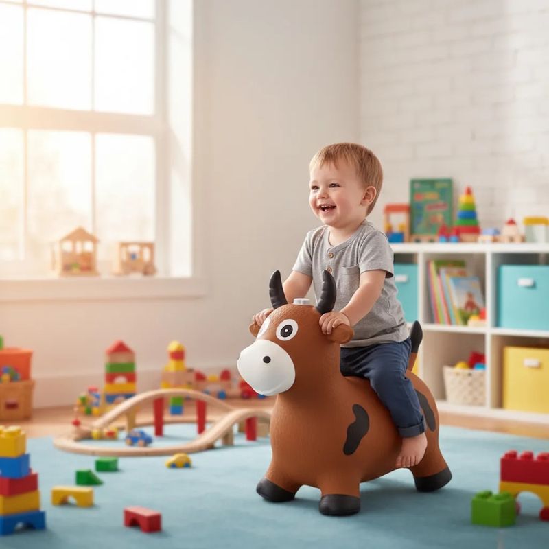 Cavalinho Inflável Marrom Boi Touro Upa Upa para Meninos Infantil Vaca Pula Pula de Vinil com Som