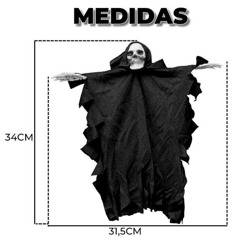 Prepare-se para dar um susto nos seus convidados com o incrível fantasma de pendurar! Com um design macabro e realista, este fantasma é perfeito para criar uma atmosfera assustadora em sua festa de Halloween. Seu tecido macio e fluído da ar fantasmagórico que ao pendurar da a impressão de que está voando. Seus braços são articulados, permitindo criar poses macabras e divertidas criando um efeito visualmente impactante e aterrorizante. Deixe a sua festa assustadoramente divertida com este toque mágico e especial.