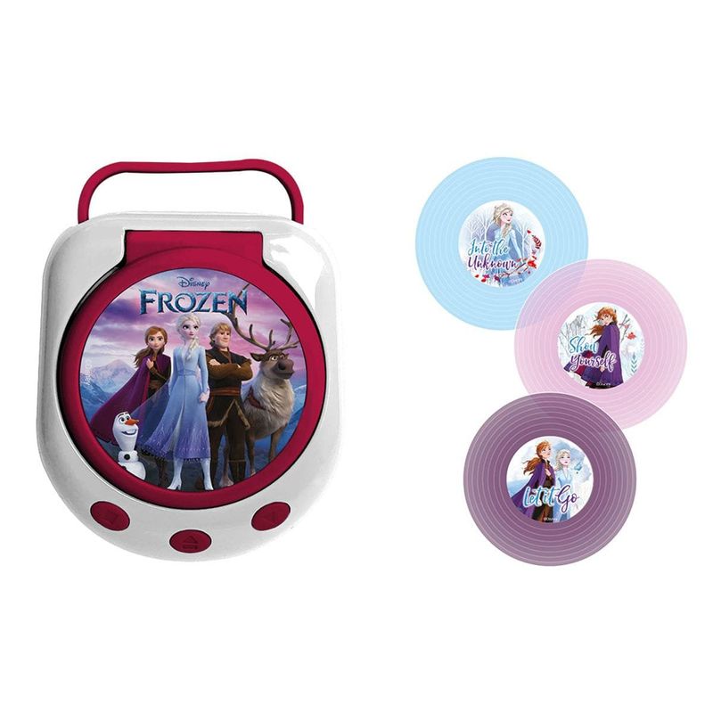 Com o CD Player da Frozen você pode escutar suas músicas favoritas dos filmes! São 3 músicas: Let It Go, Show Yourself e Into Unknown cada uma vem em um minidisco e para reproduzi-las é só colocar o disco dentro do CD Player. Suas aventuras congelantes vão ficar muito mais animadas e divertidas com o CD Player da Frozen!