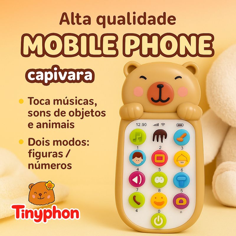 Telefone Celular Infantil Interativo Capivara Musical Com Luz E Som fala números Letras Animais com Luz