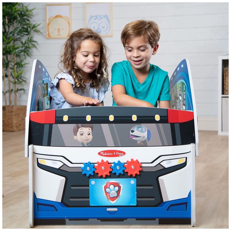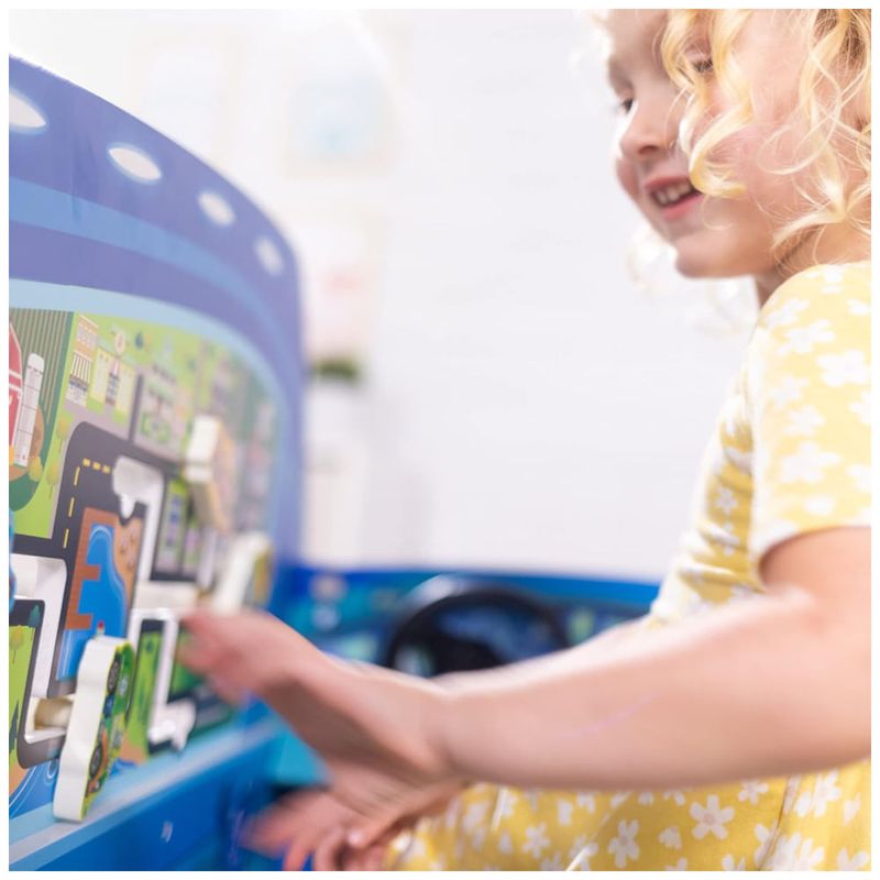 Este centro de atividades de madeira resistente e multifacetado é perfeito para crianças a partir de três anos que adoram a Patrulha Canina. Com engrenagens para girar, quebra cabeça de dupla face, labirinto deslizante, volante, pedais de acelerador e freio, espelhos laterais rebatíveis, rodas que podem ser trocadas, lata de gasolina e tampa, painel com botões de som, partida do motor, gravador de voz, reprodução, localizador e telefone, este brinquedo oferece inúmeras opções de diversão para as crianças.