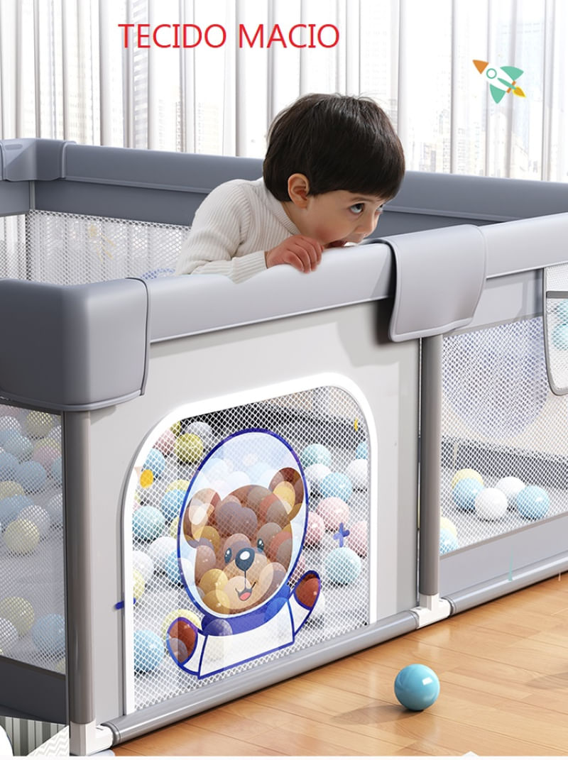 Espaçoso com 2,7m² seu bebê terá muito espaço para brincar e se divertir em um local seguro e confortável.