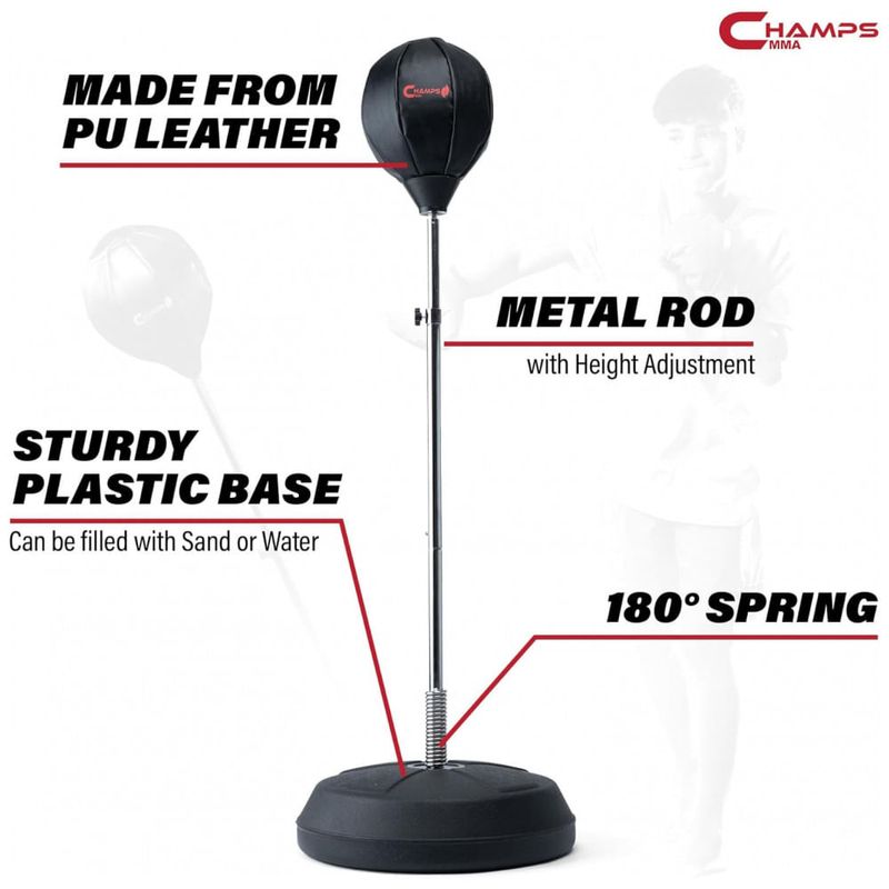 BOLSA DE PANCADAS AUTÔNOMA E RESISTENTE: Construída com haste metálica com mola, esta bolsa de pancadas se recupera a cada impacto, oferecendo uma resposta realista durante o treino. O design autônomo com suporte estável proporciona durabilidade para sessões infinitas de treinamento.