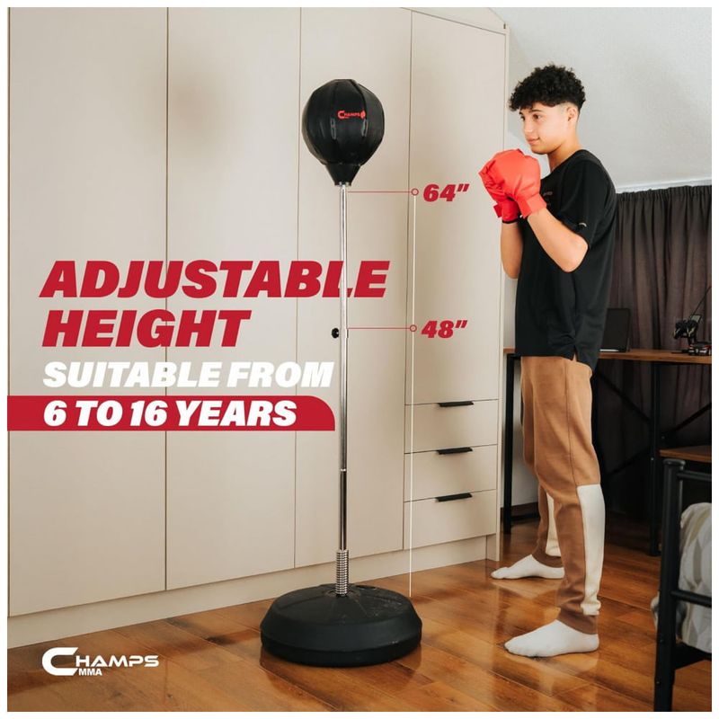 ALTURA AJUSTÁVEL PARA CAMPEÕES EM CRESCIMENTO: Este saco de pancadas possui suporte ajustável com altura que varia de 122 cm a 163 cm, ideal para crianças de 6 a 16 anos. O suporte ajustável garante diversão duradoura, ao mesmo tempo em que melhora a resistência, coordenação e reflexos para respostas mais rápidas a cada golpe.