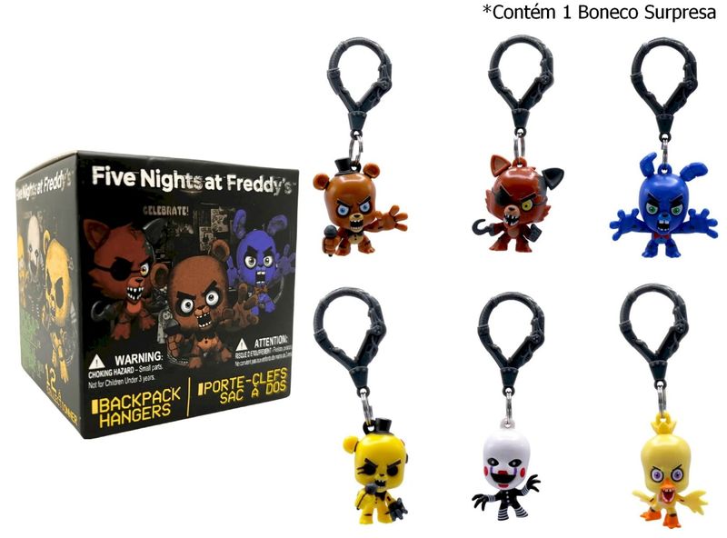 Chaveiro Unitário Surpresa Five Nights at Freddy'sMarca: Just Toys.Coleção: Five Nights at Freddy's Backpack HangersMaterial: PVC*Contém um (1) Chaveiro surpresa do Five Nights at Freddy'sDecore sua mochila com estes novos chaveiros de mochila Five Nights at Freddy's oficialmente licenciados. Leve para a escola, no carro ou brinque em casa. Se você gosta dos persgonagens Five Nights at Freddy's, não pode perder esta incrível nova série de chaveiros. Colete todas as 12 chaveiros (vendidos separadamente), entre eles 3 modelos que brilham no escuro (propabilidade de tirar ele é de 1 em 18 - Raro) e 3 modelos banhados a Ouro (propabilidade de tirar ele é de 1 em 54 - Muito Raro). Inclui um (1) chaveiro de mochila aleatório do Five Nights at Freddy's. Cada compra é cega e aleatória (embalagem do tipo Blind Box).