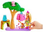 Com as bonecas e os conjuntos inspirados em Barbie® e Chelsea™ The Lost Birthday™, a imaginação dos jovens voará para aventuras repletas de exploração e amigos animais! A boneca Chelsea™ está comemorando seu aniversário com os seus amigos animais e um grande presente repleto de surpresas divertidas. As crianças podem prender a boneca Chelsea™ e seu amigo macaco no conjunto e, em seguida, girá-los para ajudar a boneca Chelsea™ a balançar no presente surpresa. Quando ele abrir, surgira um arco-íris de acessórios plug-and-play prontos para brincar! Use-os para decorar a árvore e o bolo da boneca Chelsea™ e festejar com o bebê preguiça e os amigos macacos. Seus amigos animais podem ser conectados ao conjunto, permitindo um mundo de brincadeiras ativas e narrativas inspiradoras! A boneca não fica em pé sozinha. As cores e as decorações podem variar.