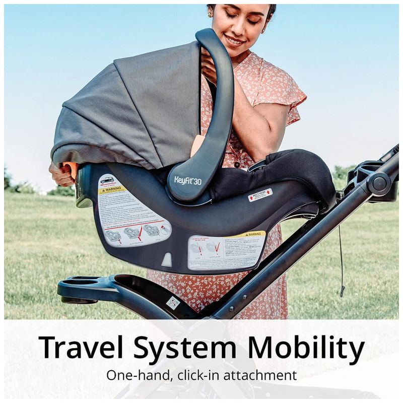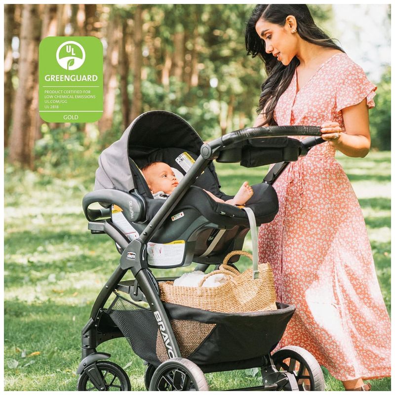 A transportadora leve com alça ergonômica encaixa com segurança na base do carro e carrinhos Chicco compatíveis para viagens suaves e transferências perfeitas
