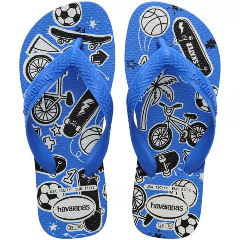 Um modelo feito para as crianças que amam esportes. A Havaianas Kids Athletic entra de cabeça no universo esportivo e traz estampas para os fãs de tênis, futebol e ciclismo. Havaianas Kids Athletic é o chinelo perfeito para as crianças que adoram esportes e ação! As estampas de surfe, skate e ciclismo vão levar os pequenos para as maiores aventuras! As crianças que adoram 1001 atividades precisam de um calçado resistente e confortável. Este chinelo tem tiras largas e uma base estável, que vai acompanhar os pequenos por muito tempo.