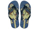 Apresenta duas opções de grafia, uma para meninos e outra para meninas, com propostas democráticas e populares. Para os meninos, a temática de dinossauros e aventura é relevante, trazendo na grafia um dinossauro explorador de mochila e segurando um binóculo. Ao fundo, desenhos de linhas topográficas, símbolos da rosa dos ventos e de um carro reforçam o clima de aventura.