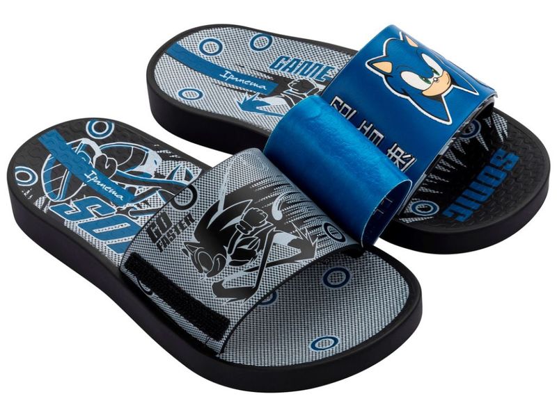 O  Chinelo Infantil Ipanema Sonic Preto confeccionado em material resistente, palmilha macia, solado com fissuras que evita escorregões. A tira no pé super estilizada se abre e revela novos desenhos, deixando qualquer atividade ainda mais divertida.