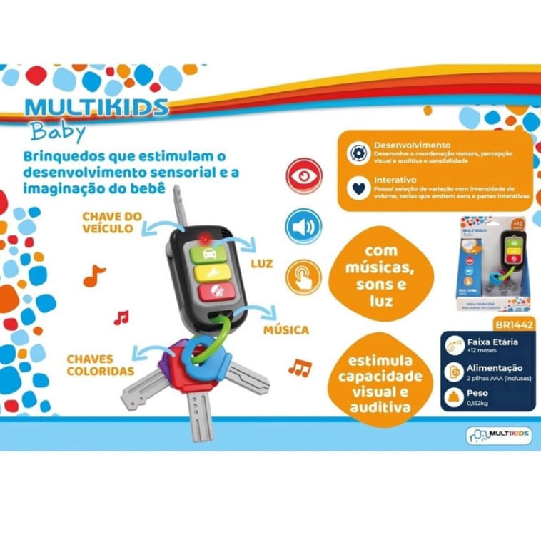 Conteúdo da Embalagem: 01 Chocalho Molho de Chaves de Carro Multikids