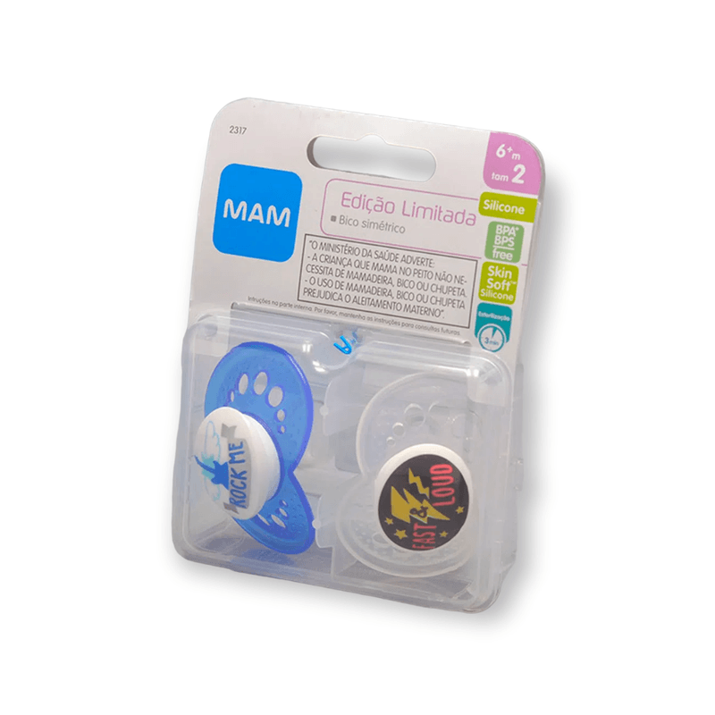CHUPETA MAM 6 MESES FASE 2 BICO SILICONE SKINSOFT EMBALAGEM DUPLA Cor:Azul Rock