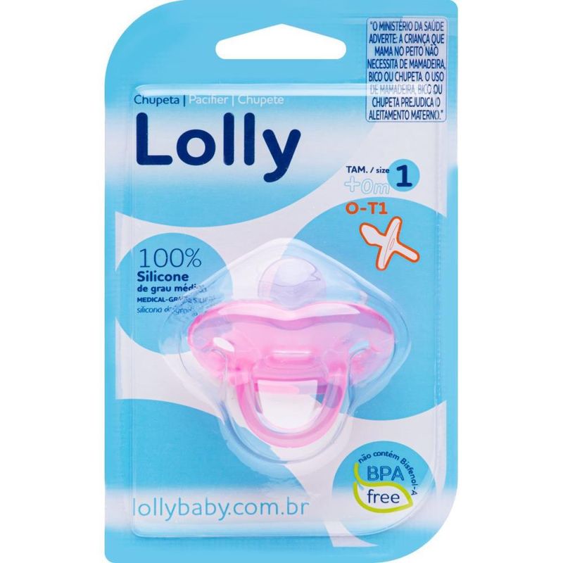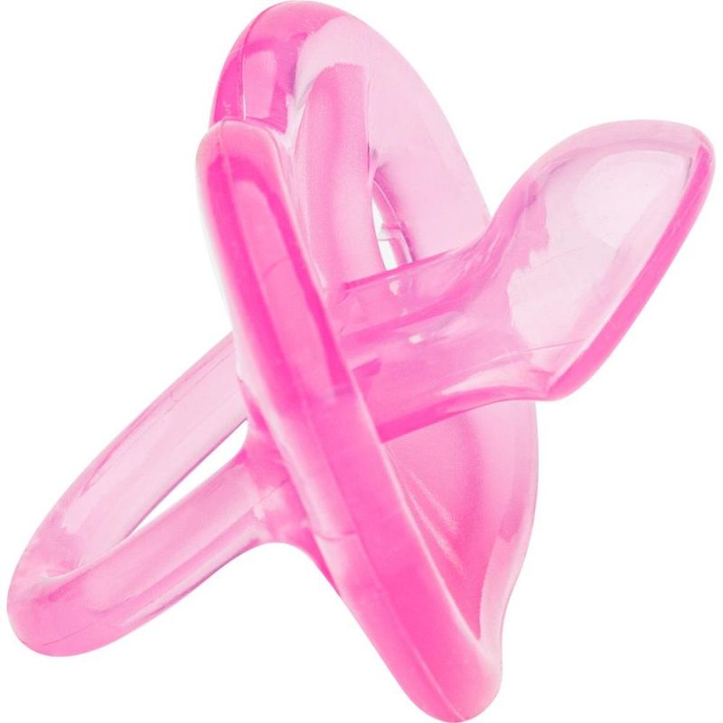 Chupeta 100% silicone formato ortodôntica tamanho 1 na cor rosa, indicada para crianças de 0 a 6 meses.