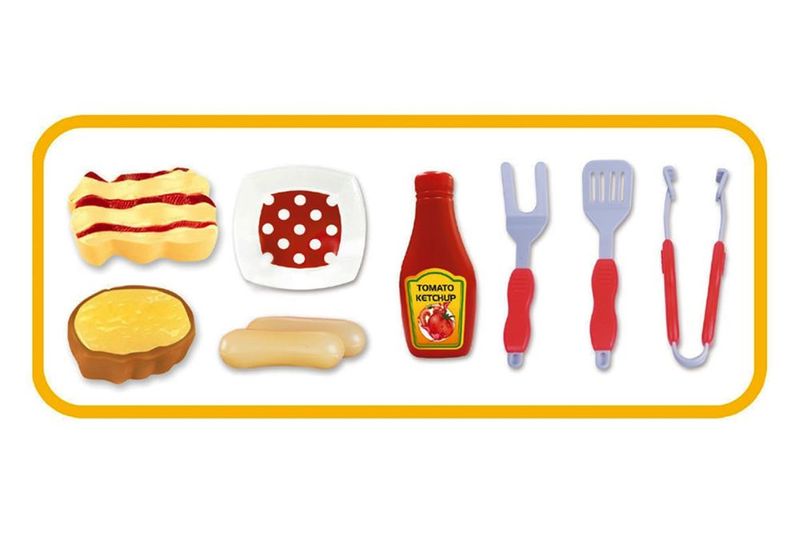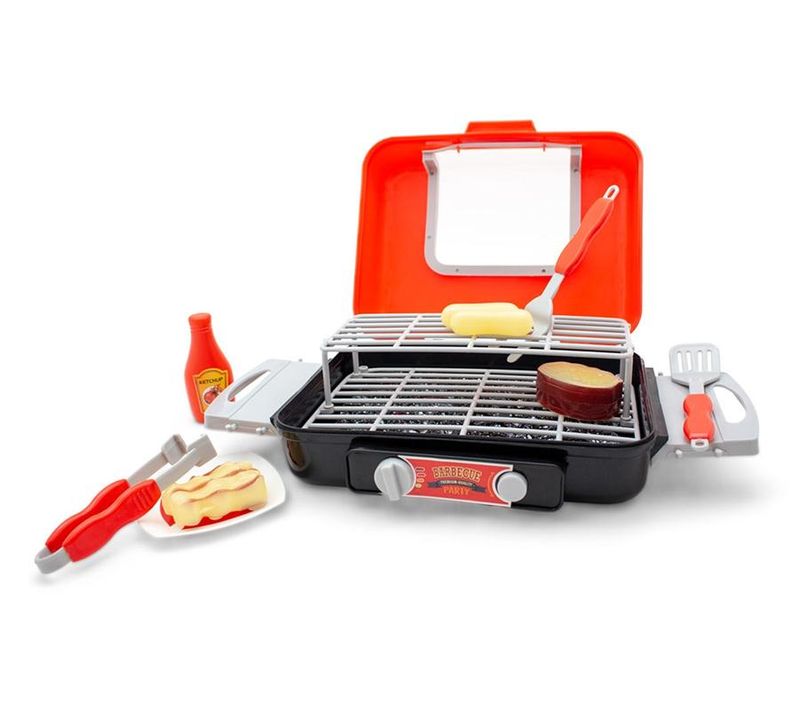 Kit Churrasqueira Mágica, da marca Toyng, vem com esse lançamento, as carnes mudam de cor, e além disso simula barulho de fritura. Uma òtima opção para presentear. Utiliza 3 Pilhas AA 1,5v.
