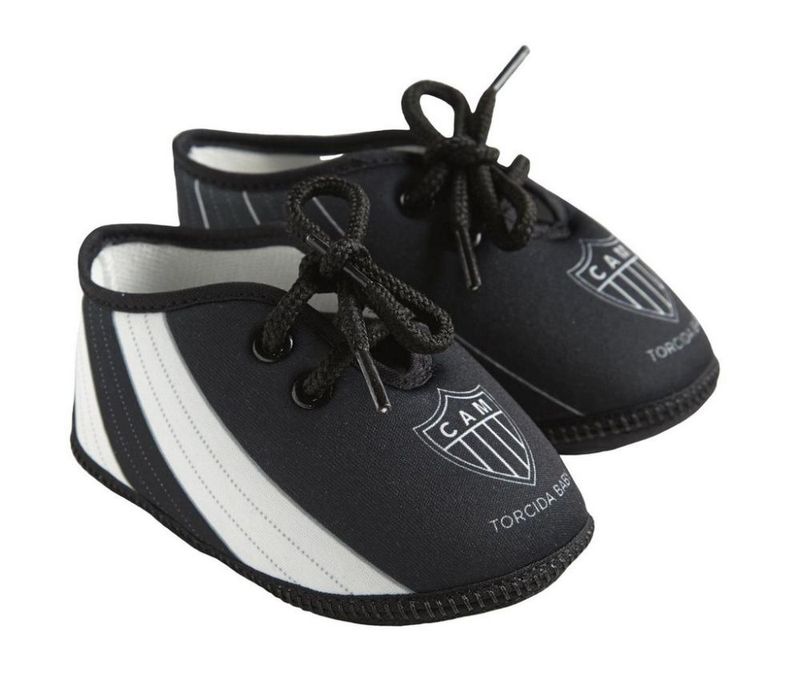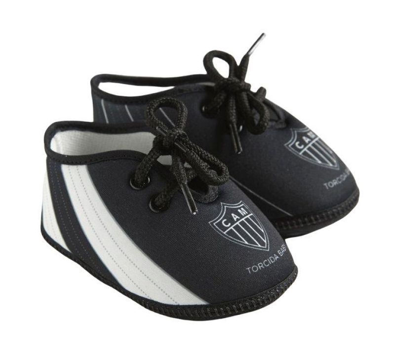 Chuteira Bebê Atlético MG Preta Torcida Baby Essa linda chuteira vai deixar o seu bebê com muito estilo para torcer para o Atlético. Ela é composta 100% de algodão antialérgico, tem elasticidade da sola e ainda vem com o escudo do time na parte frontal da chuteira. O pezinho de seu bebê estará protegido e o papai vai ficar cheio de orgulho! Produto Oficial e Licenciado! Medidas: Tamanho P (indicado para 0-3 meses): SOLA DE TECIDO 9,5 cm Tamanho M (indicado para 3-6 meses): SOLA DE TECIDO 10 cm Tamanho G (indicado para 6-9 meses): SOLA DE TECIDO 10,5 cm Tamanho GG (indicado para 9-12 meses): SOLA DE TECIDO 11,5 cm