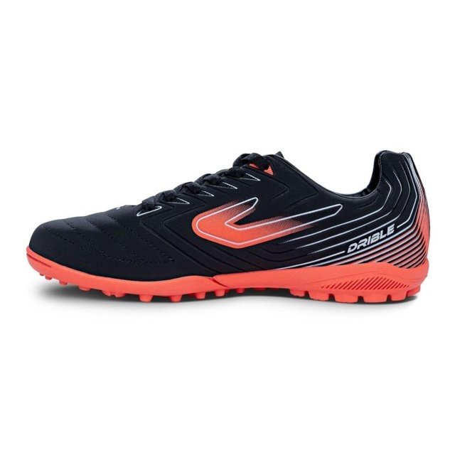 • Chuteira Topper Drible V Futsal Preto/Coral