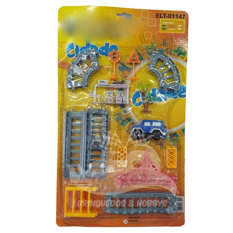 :: Conteúdo da embalagem: 1 Carrinho; 1 Ponte; 8 Suportes para a ponte; 12 Ruas; 1 Árvore; 1 Posto de Gasolina; 2 Placas de Trânsito