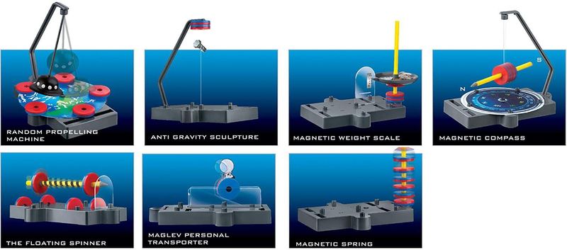 Com o Ciência da Levitação 4M faça um lápis flutuar no ar, construa um transportador pessoal usando o princípio do trem maglev, construa uma escultura de metal que desafia a gravidade, uma máquina de movimento aleatório que oscila de forma imprevisível, e muito mais.