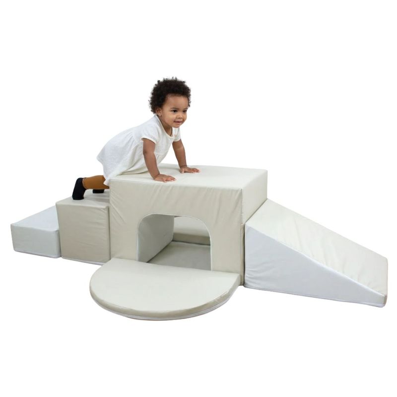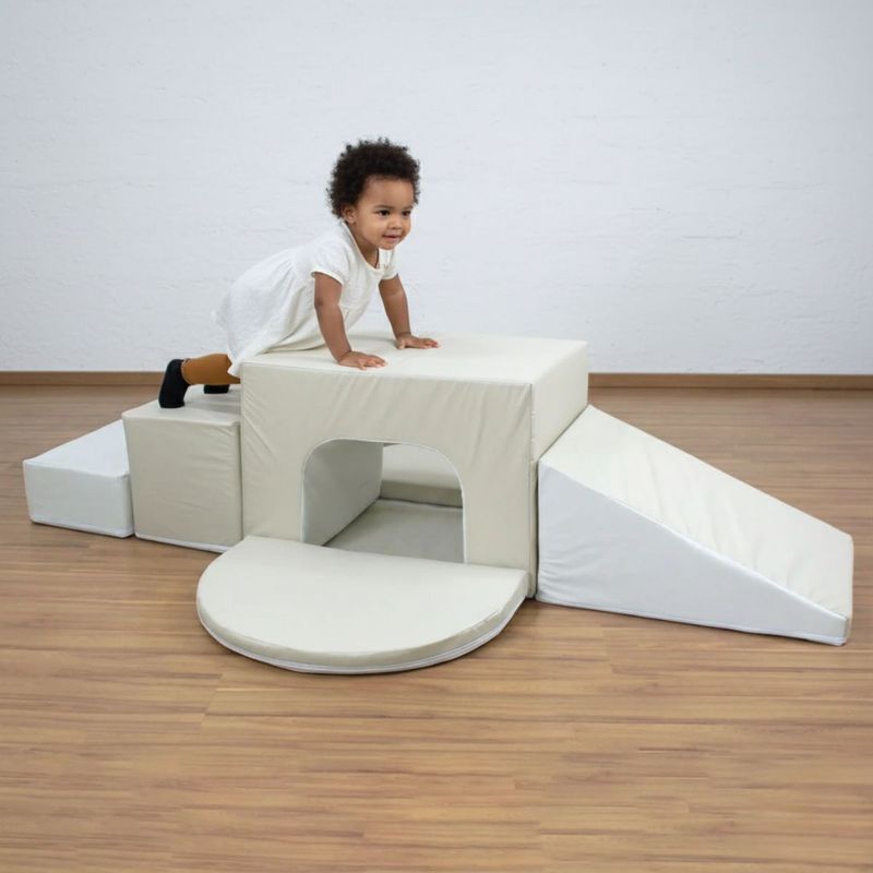 Transforme qualquer espaço num playground seguro, colorido e cheio de descobertas! O Circuito Soft Túnel combina peças em espuma de alta densidade revestida em PVC antialérgico e lavável, incentivando a exploração livre e o desenvolvimento motor de crianças de 1 a 5 anos. O que vem no kit 2 Degraus (10 cm de altura): perfeitos para práticas de subida e descida. 1 Rampa (30 cm de comprimento): estimula o empurrar em Tummy Time e o primeiro engatinhar em inclinação. 1 Túnel (50 cm de altura): passagem segura para fortalecer coordenação e confiança. 2 Colchonetes Semicírculo: definem entrada e saída, amortecendo impactos e ampliando o espaço de brincadeira. Especificações Técnicas Dimensões Totais: 1,58 m (C) × 1,52 m (L) × 0,50 m (A) Peso do Conjunto: 8 kg Capacidade Suportada: até 30–40 kg Material: Espuma de alta densidade + PVC antialérgico, impermeável e lavável Idade Recomendada: 1 a 5 anos. Benefícios ao Desenvolvimento Coordenação Motora Grossa: subir, descer, rastejar e engatinhar em diferentes alturas. Equilíbrio e Propriocepção: transpor desníveis e manter postura sobre as peças. Orientação Espacial: percorrer trajetos definidos e desenvolver noção de espaço. Autoconfiança: domínio gradual dos obstáculos, aumentando a autoestima. Sugestões de Uso Circuito Sequencial: alinhe degraus e rampa até o túnel, formando um percurso contínuo para engatinhar e correr. Desafio de Velocidade: cronometre a passagem completa — ótimo para brincadeiras em dupla. Zona Sensorial: adicione tapetes texturizados ou pedrinhas de EVA nas bases para estímulos táteis adicionais. Estação de Leitura Móvel: vire os colchonetes semicírculo para criar um mini sofá e use o túnel como “cobertura” para histórias em grupo. Atividades Terapêuticas: ideal para clínicas de fisioterapia infantil e terapia ocupacional, auxiliando exercícios de força e equilíbrio. Observação: Produto artesanal — pequenas variações de ±1 cm nas medidas podem ocorrer sem comprometer a qualidade, a segurança ou a diversão.