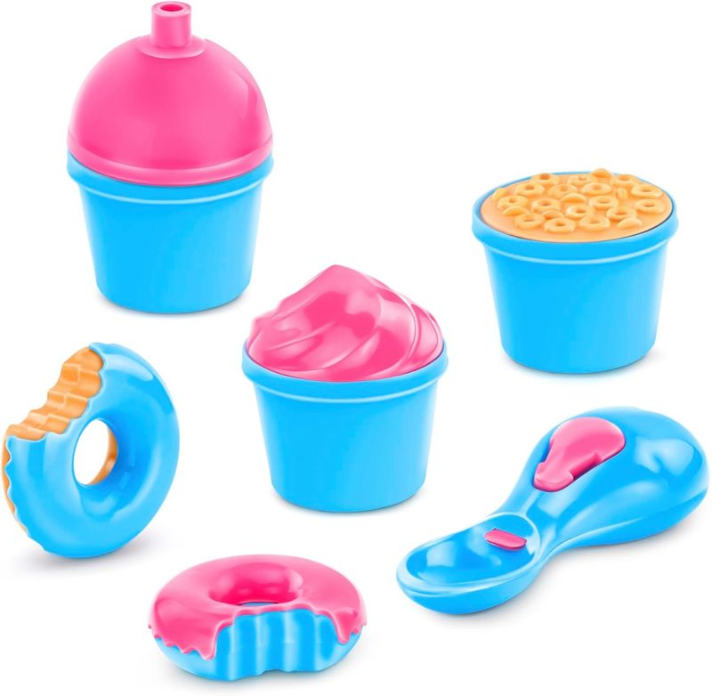 Conteúdo da Embalagem: 01 boneca, 02 Donuts, 01 Pote com tampa para milk shake e 01 Tampa para cereais, 01 Colher, 01 Par de sapatinho e Certidão de nascimento