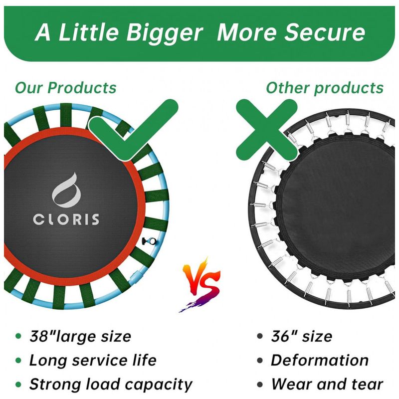 FÁCIL DE COLOCAR Este trampolim elástico requer pouca configuração, pois vem com as bandas instaladas e adequadamente enroladas ao redor do quadro quando você as compra. Para facilitar a montagem fácil, também fazemos um vídeo de demonstração para fornecer instruções exatas e passo a passo, garantindo que você aproveite nosso produto mais cedo ou mais tarde