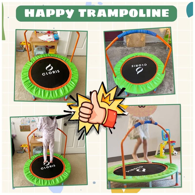 E DIVERTIDO O guidão acolchoado é ajustável de 81 a que se ajusta perfeitamente à altura do seu filho. As crianças podem usar o guidão para fácil aderência para controlar seu salto. Este trampolim sem mola é mais do que os ressaltos de mola, principalmente devido às partes mais macias. Há menos chance de sentir dedos presos ou dedos dos pés, independentemente das precauções de segurança em vigor. Além disso, este trampolim foi adicionado com uma cobertura no topo das bandas para fornecer uma superfície de salto mais segura.