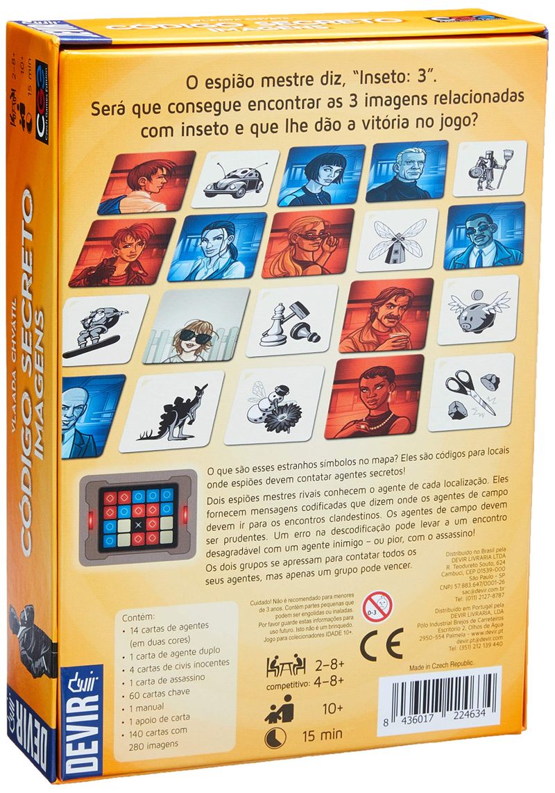 Código Secreto: Imagens é a versão com ilustrações. Em vez de uma palavra, cada cartão contém uma imagem, mas o jogo continua a ter as mesmas regras e a mesma dose de diversão. Além disso, esta versão pode ser jogada separadamente ou combinado com Código Secreto.