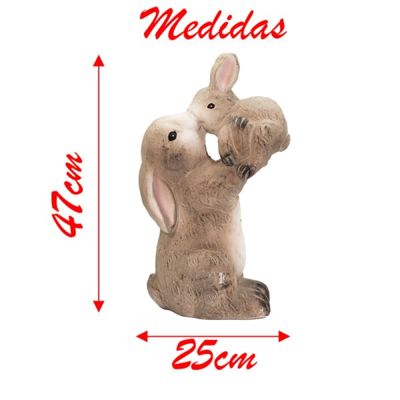 Coelha de Páscoa Cerâmica Coelhinha com Filhote Decoração 47cm -