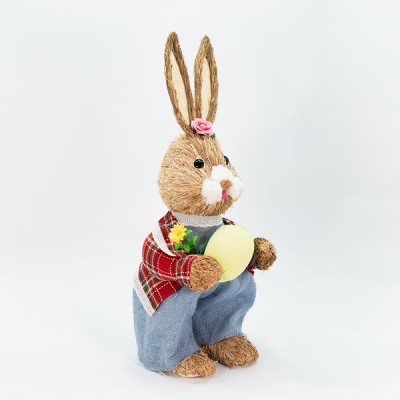 Coelho De Páscoa Decoração Enfeite em Palha Coelhinho Xadrez 54cm -