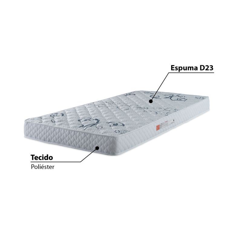 Colchão Solteiro Espuma D23 78x188x14 cm -Branco
