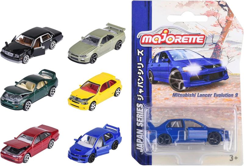 Coleção c/ 6 Miniaturas Japan Series Premium CarsMarca do produto: MajoretteColeção: Japan Series Premium CarsEscala: 1/64 (de 7,5 a 8 cm de comprimento)Miniatura em Metal Fundido (Die-Cast) com partes de plástico.Carros com roda livre.Alguns Veículos possuem partes móveis (abrem a porta ou tampa da caçamba)Miniaturas desta coleção:1 - Toyota Supra JZA802 - Mitsubishi Lancer Evolution 93 - Toyota Century4 - Nissan Skyline GT-R (R34)5 - Honda Civic Type R EK96 - Nissan Cefiro A31